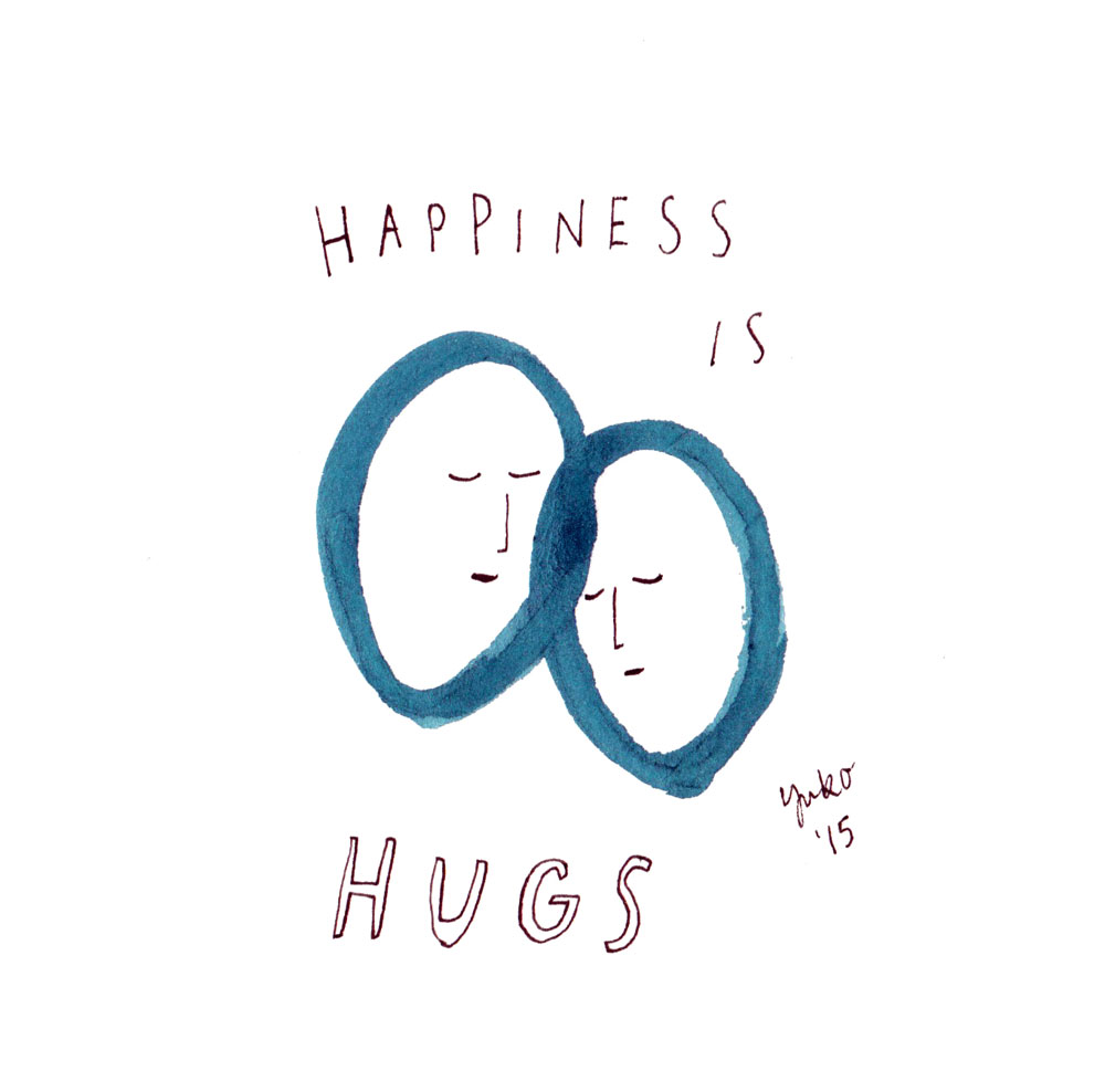 Day 277: Happiness is hugs. January 27, 2015365 day illustration challenge, Gouache, Hand Lettering, Illustration, Pen & Inkhappiness, hugs, loveYuko Happiness is hugs.