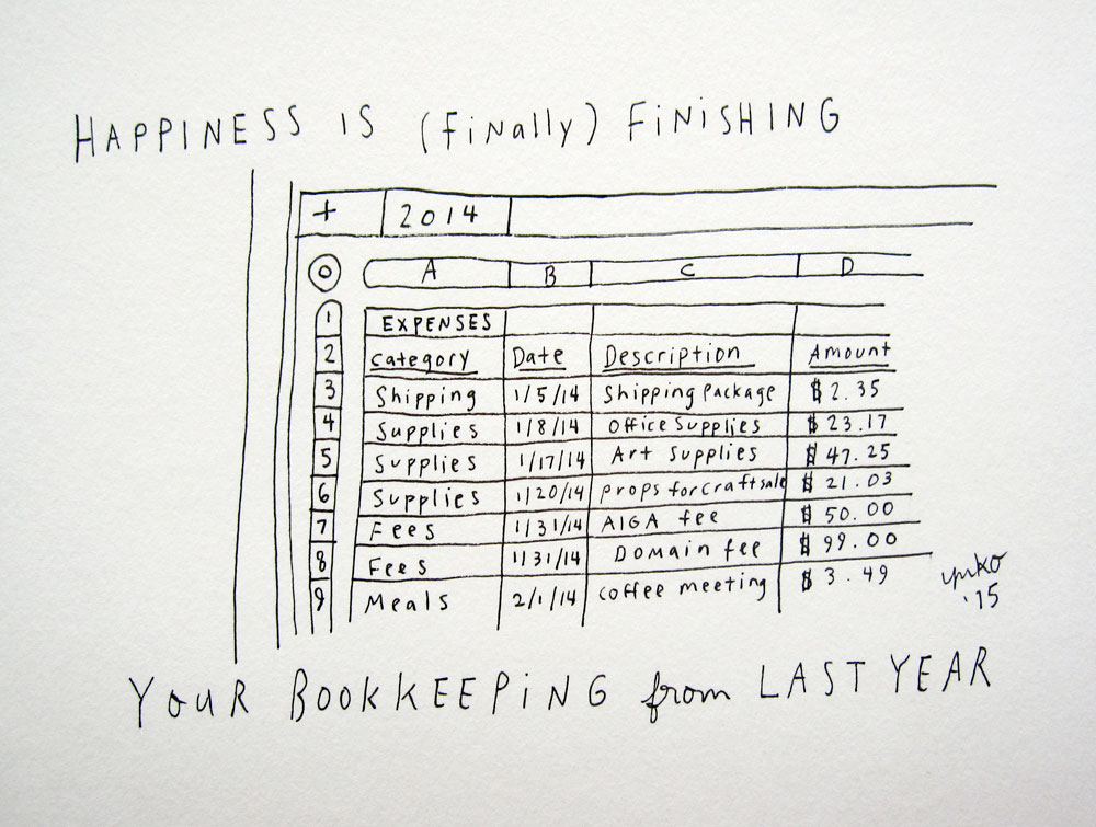Day 262: Happiness is (finally) finishing your bookkeeping from last year January 12, 2015365 day illustration challenge, Hand Lettering, Illustration, Pen & Inkbookkeeping, happinessYuko Happiness is (finally) finishing your bookkeeping from last year. My goal is to keep my books more consistently this year… 😀