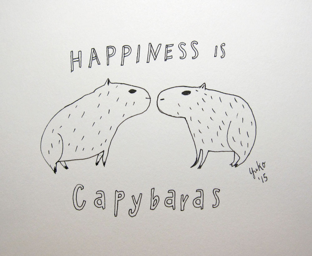 Day 266: Happiness is capybaras. January 16, 2015365 day illustration challenge, Animals, Hand Lettering, Illustration, Pen & Inkcapybaras, happiness, ROUSYuko Happiness is capybaras.