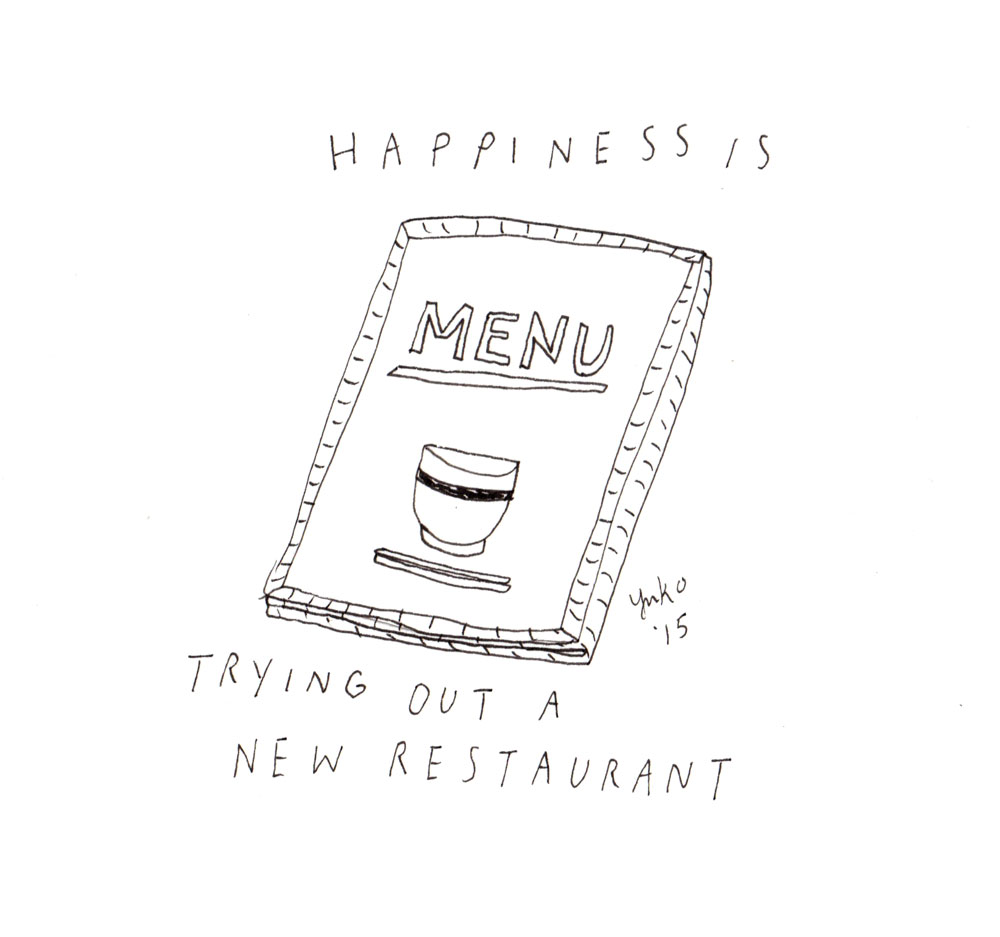 Day 290: Happiness is trying out a new restaurant. February 9, 2015365 day illustration challenge, Food, Hand Lettering, Illustration, Pen & Inkhappiness, restaurantYuko Happiness is trying out a new restaurant.