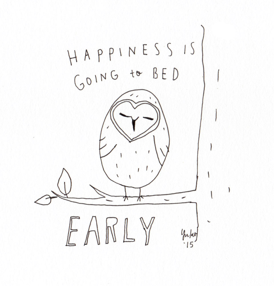 Day 292: Happiness is going to bed early. February 11, 2015365 day illustration challenge, Hand Lettering, Illustration, Pen & Inkhappiness, owl, sleepYuko Happiness is going to bed early. Like, 8pm.