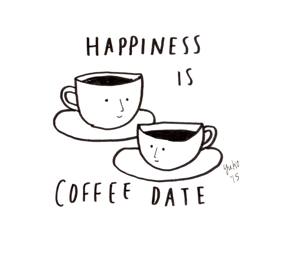 Day 285: Happiness is coffee date. February 4, 2015365 day illustration challenge, Hand Lettering, Illustration, Pen & Inkcoffee date, happinessYuko Happiness is coffee date.