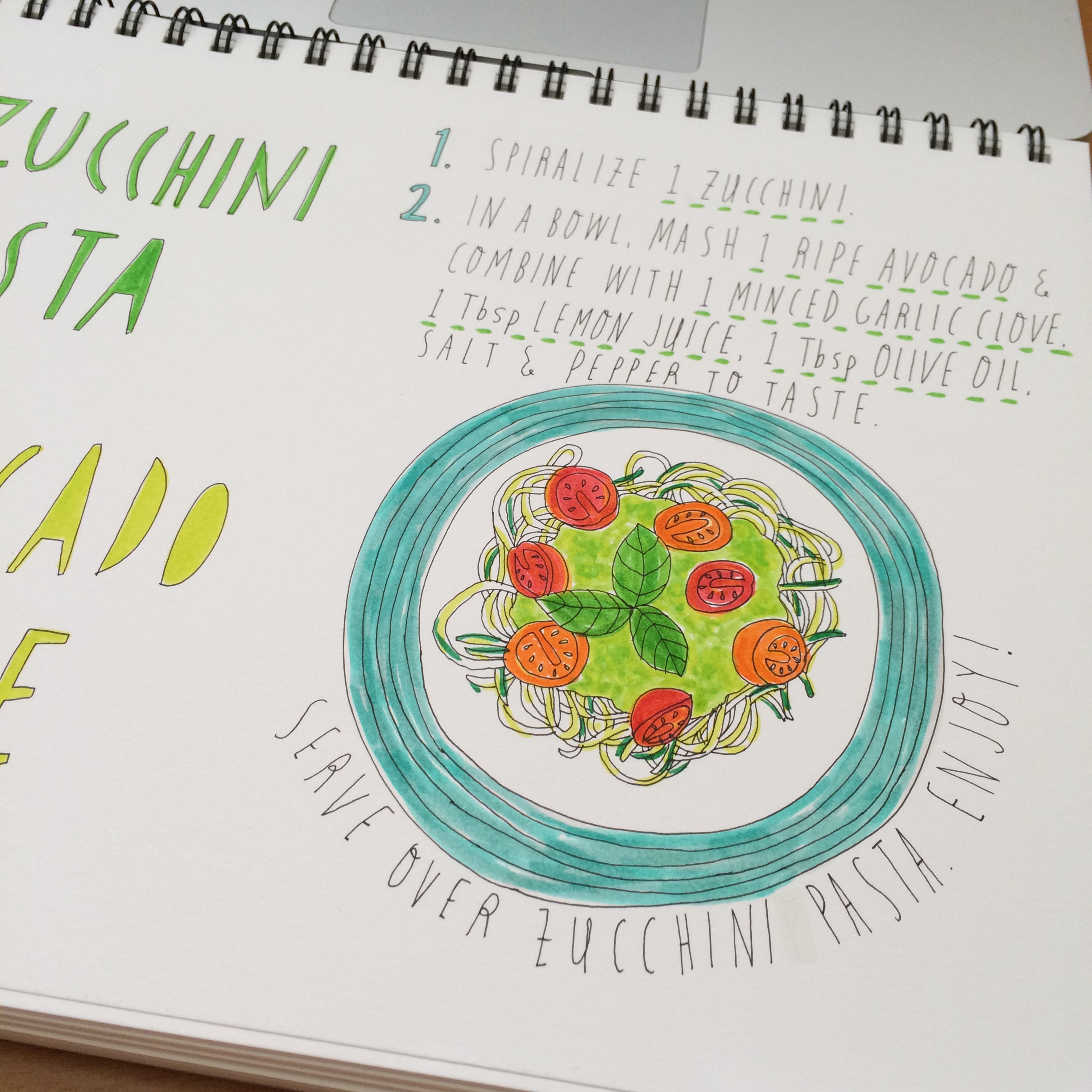 I usually work with pen and ink on paper. Here is the lettering for the title. I’m using a Pigma Micron pen (black, size 01) and Canson Mixed Media sketchbook here.I have a rough layout in mind when I draw my recipes. Recipes that don’t involve a ton of ingredients and steps are easier to create. And those are recipes I love to cook anyway!I hand write all the texts. I try to make it legible and easy to follow.