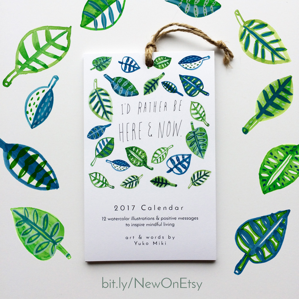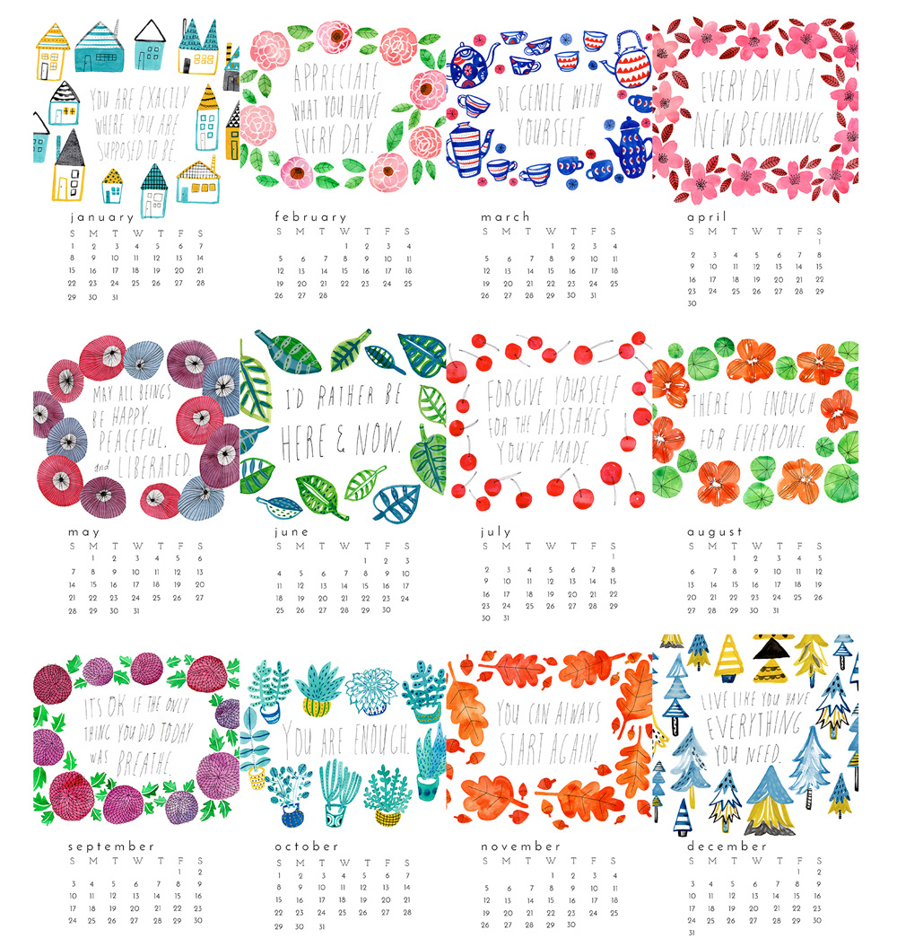 1. 2017 Mindfulness Wall Calendar is beautifully illustrated with watercolor, gouache, and pen, and every month you will get my handwritten positive message to inspire mindfulness and gratitude.