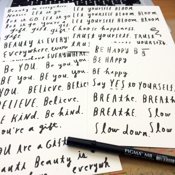 For the texts, I first did a couple of rounds of brainstorming and jotted down phrases that made me happy and grounded.