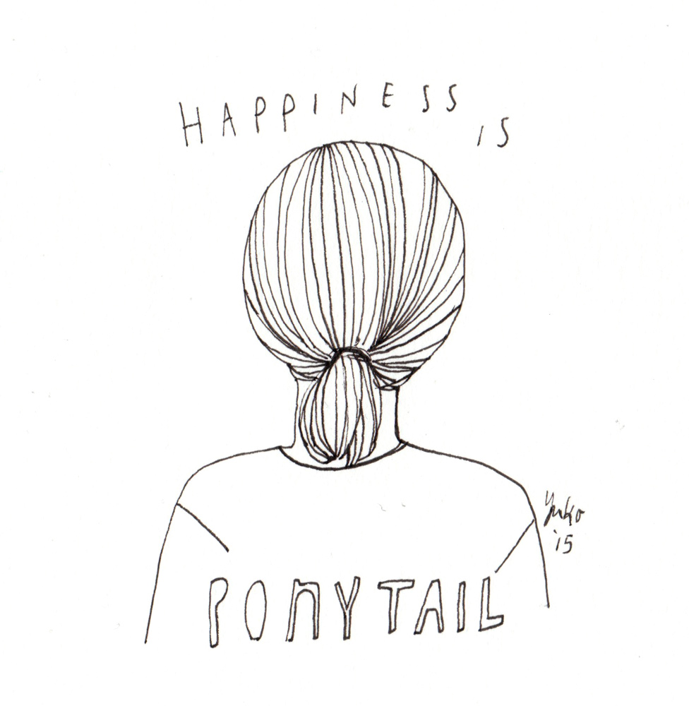 Day 336: Happiness is ponytail. March 27, 2015365 day illustration challenge, Hand Lettering, Illustration, Pen & Inkhair, happiness, ponytailYuko Happiness is ponytail. I’ve been growing my hair out for a while now… Finally a ponytail!