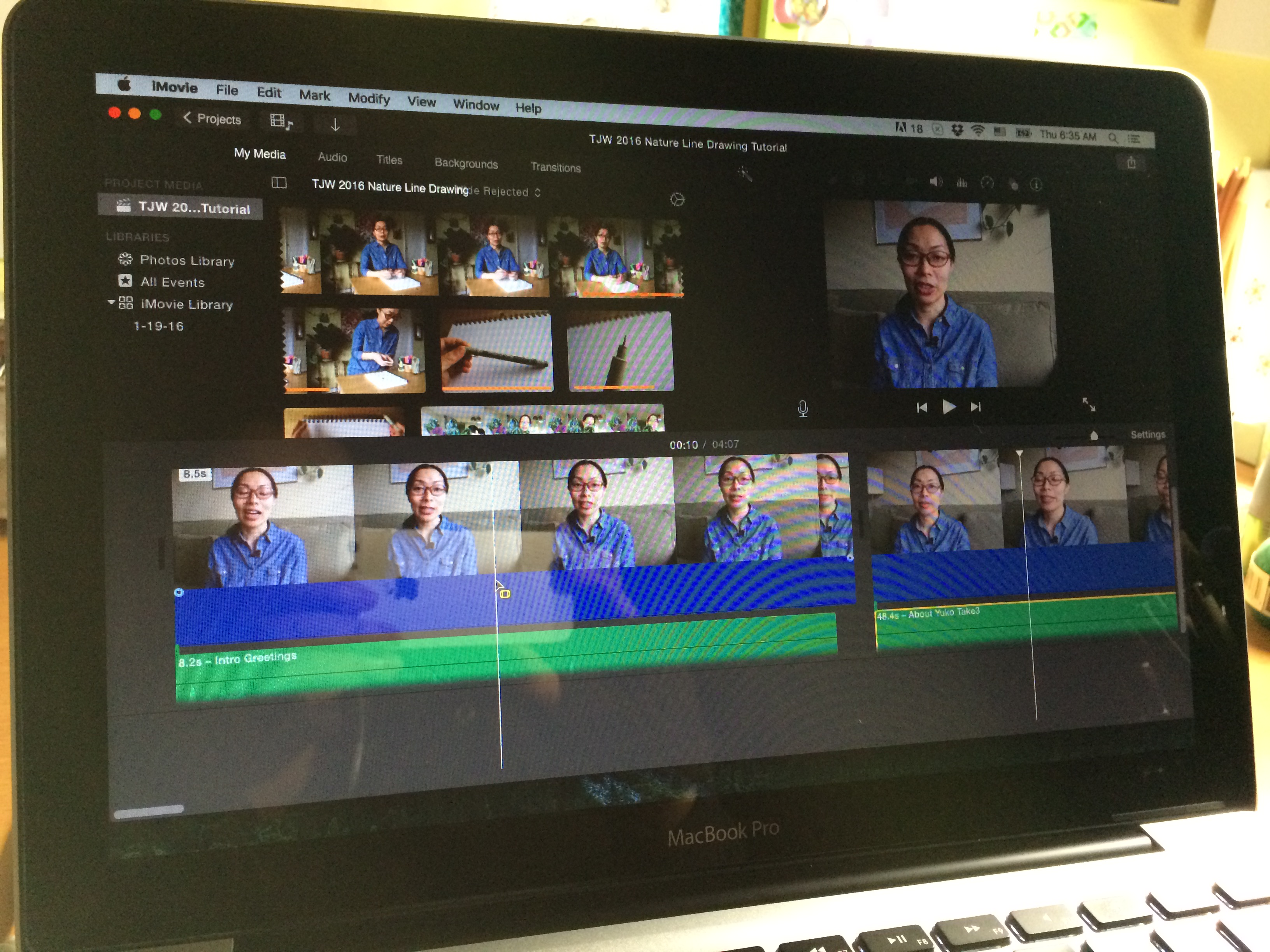 After I got the footage and audio uploaded in my Dropbox folder, I put together the video in iMovie app. It’s a free app that comes with your Apple computer and lets you produce a basic video pretty easily.