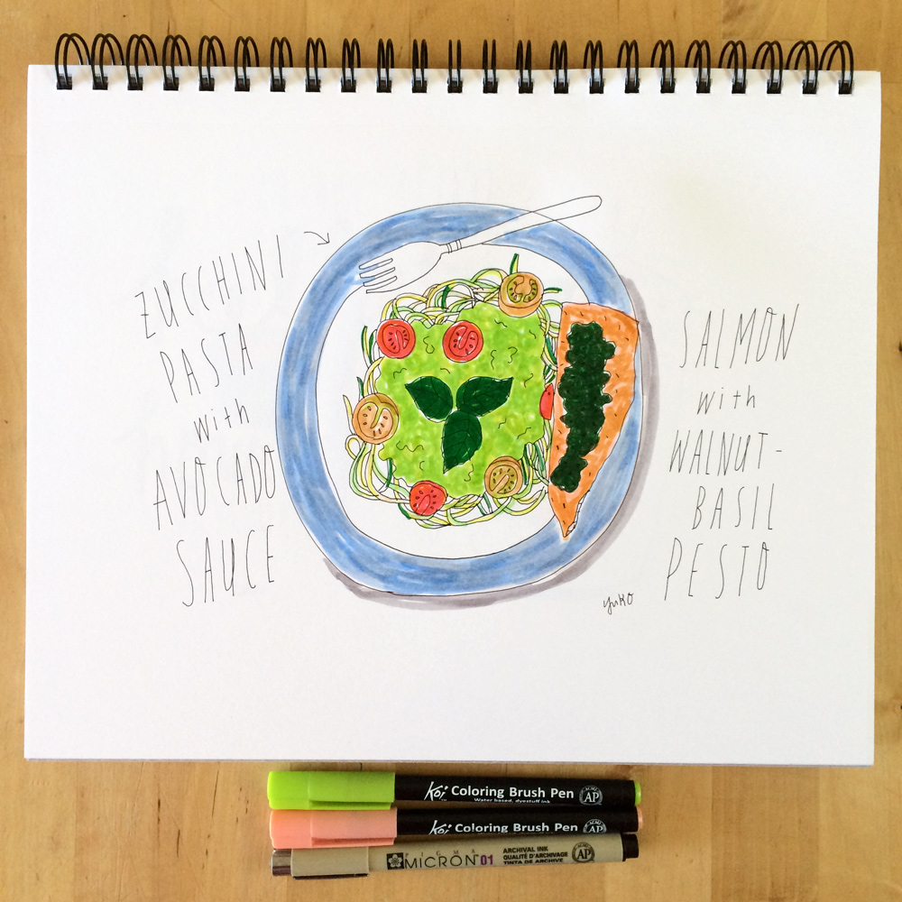 BTW, you can check out the illustrated recipe for the zucchini pasta with creamy avocado sauce here 🙂