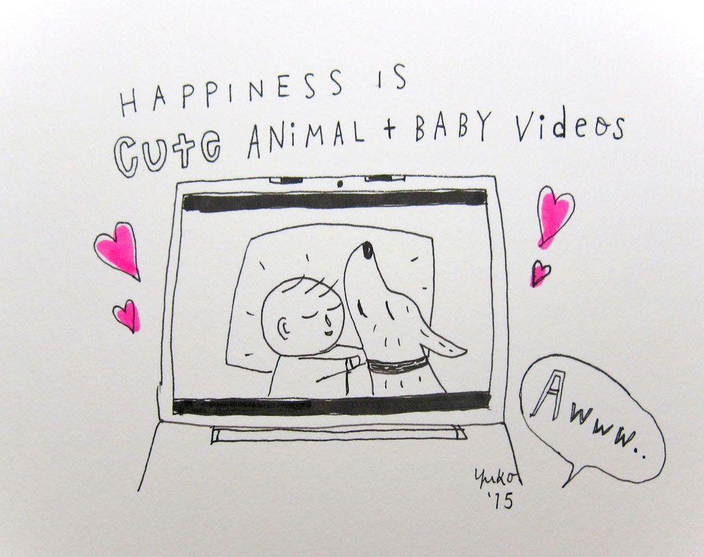 Day 259: Happiness is cute animal and baby videos January 9, 2015365 day illustration challenge, Animals, Hand Lettering, Illustration, Pen & Ink, Watercoloranimal, baby, happinessYuko Happiness is cute animal and baby videos. Never fails ❤