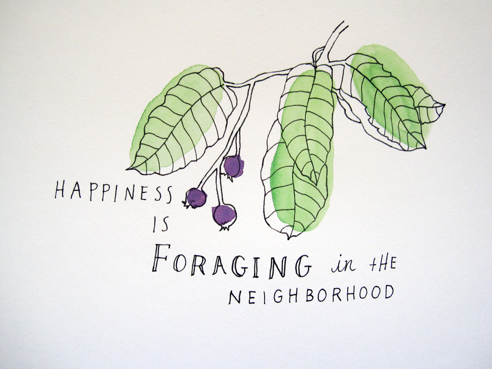 Happiness is: Day 69 June 25, 2014365 day illustration challenge, Food, Hand Lettering, Illustration, Nature, Pen & Ink, Watercolorberries, foraging, happinessYuko service berries!