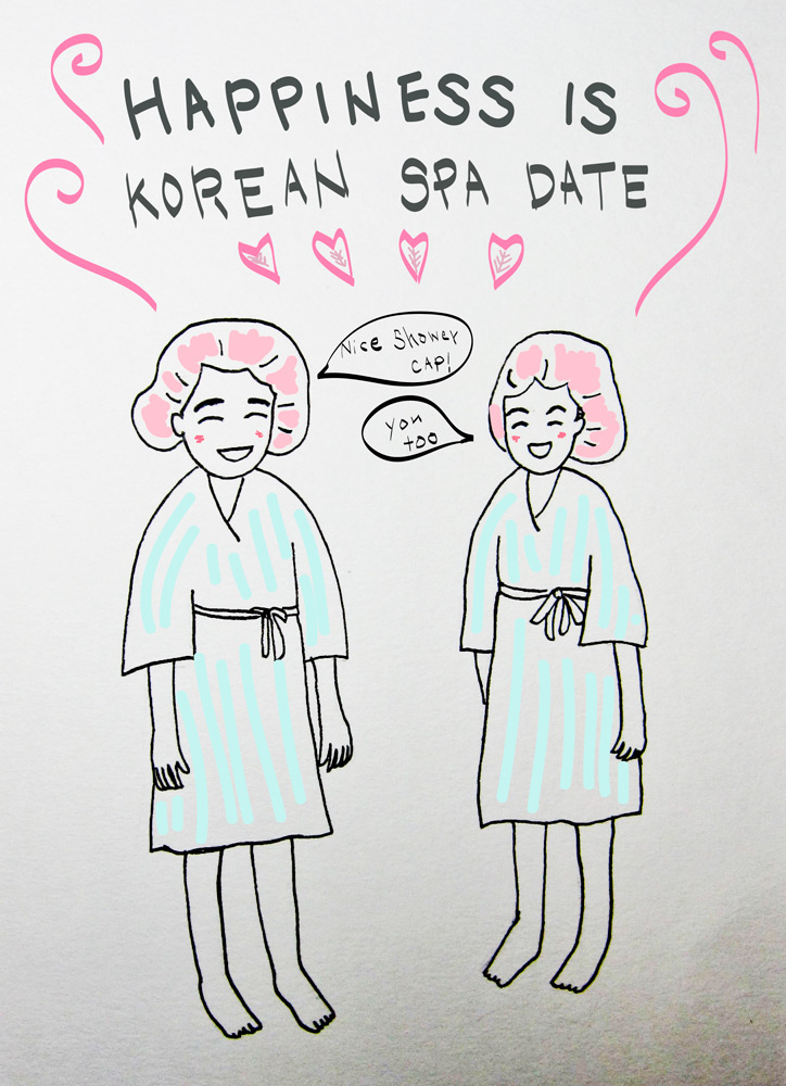 Happiness is: Day 16 May 3, 2014365 day illustration challenge, Adobe Illustrator, Illustration, Pen & Inkfriends, happiness, Korean spa, relaxationYuko so good!!