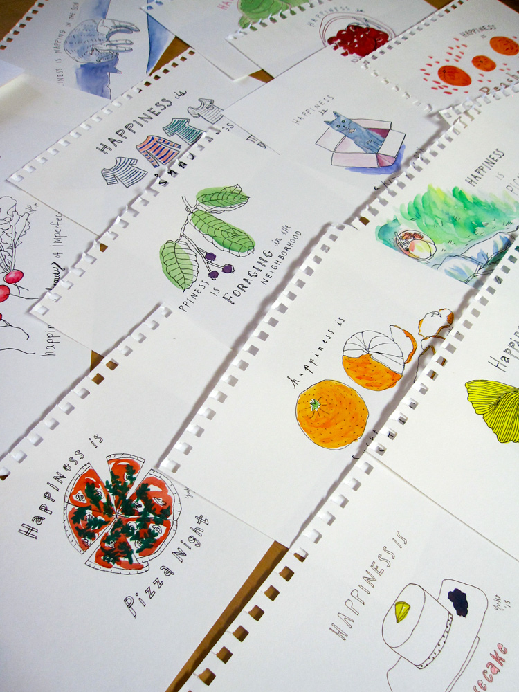 In case you aren’t familiar with my project – I decided to draw and post one illustration about happiness every day for 365 days back in April 2014 after watching a very inspirational video of Lisa Congdon’s speech “Embrace the Abyss“. Lisa is an artist/friend I admire so much and was talking about how she practices going out of her comfort zone every day to help her grow as an artist.