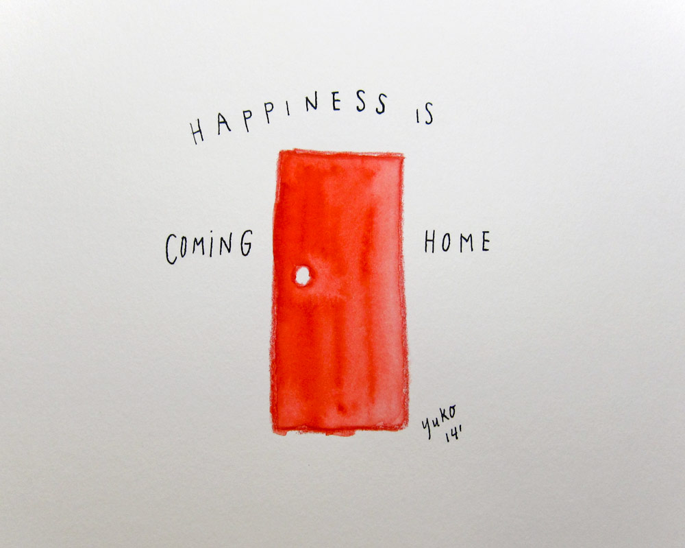 Happiness is: Day 232 December 5, 2014365 day illustration challenge, Colored Pencil, Gouache, Hand Lettering, Illustration, Pen & Inkhappiness, homeYuko Happiness is coming home. After a long day at work, there is no other place I’d rather be… 🙂