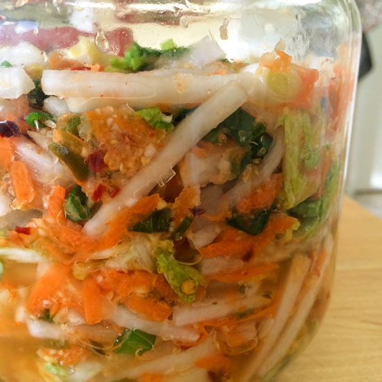 Anyway, I made the vegetarian kimchi above with Chinese cabbage, daikon radish, and carrots, and it turned out yummy!
