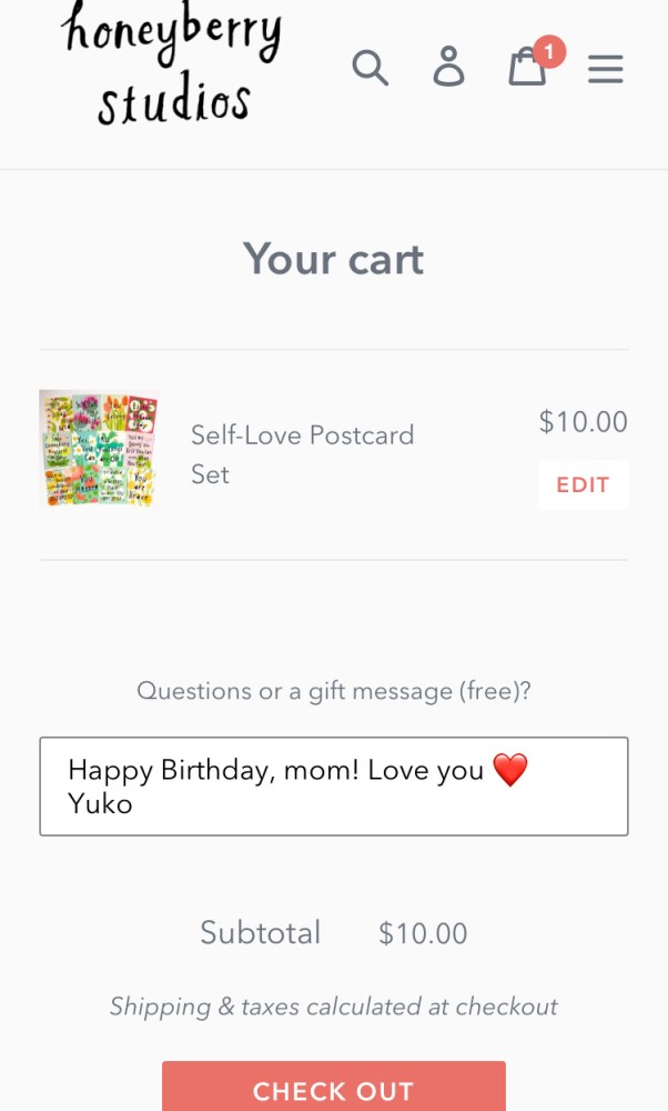 If you’re directly shipping self-love filled gifts to your loved ones, be sure to leave a message there.